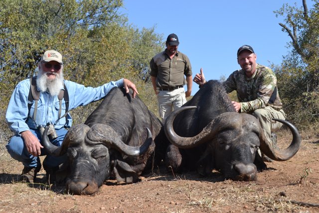 Cape Buffalo are hunted on foot, which makes this hunt extremely exciting. You will start out by scouting for fresh tracks or fresh Buffalo dung, that are normally found at waterholes or on gravel roads on the area. You will then use caution to track down the heard or “Dagga boys” and stalk your trophy carefully in order to put you in the right position to harvest your bull. Most of the time you will get with in 20 to 30 yards. Older bulls tend to separate from the herds and are solitary or form small bachelor groups often called Dagga boys.