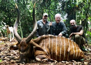 The rain forrest of Cameroon is well known for hunting the following species: Bongo, Dwarf Forest Buffalo, Forest Sitatunga, Giant Forest Hog, Yellow Back Duiker, Blue, Peters and Bay Duikers, Red River Hogs and Small Cats.