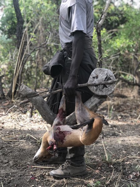 It is also incredible to see the Pygmy trackers and dogs working. Hunting is mainly on foot and out of blinds near the edge of large clearings.