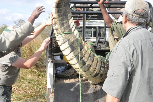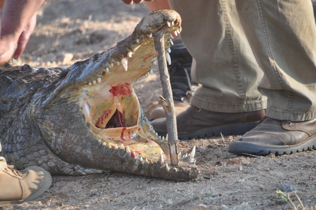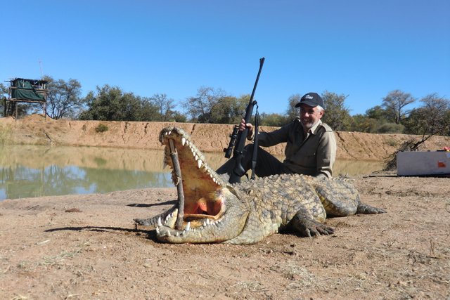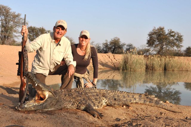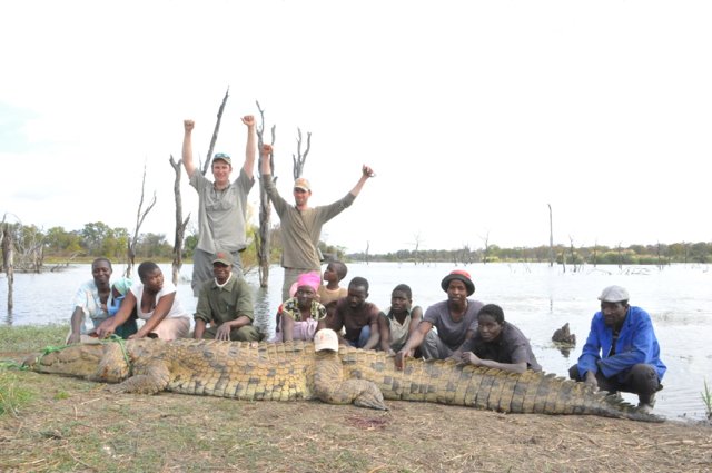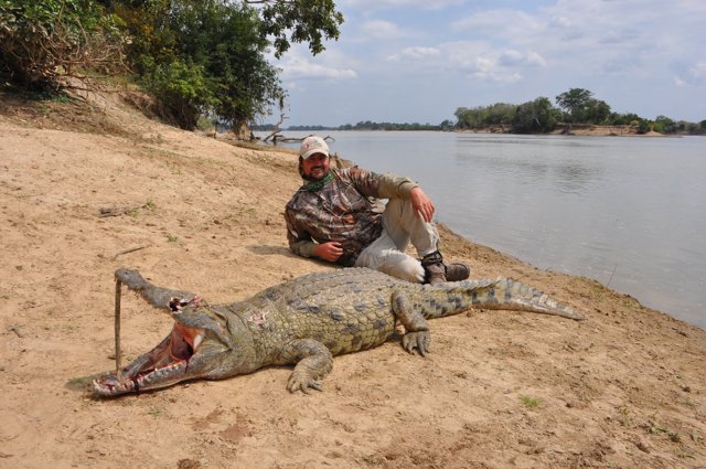 Elephant and Cape Buffalo are generally hunt on foot and most of the time involves lots of tracking and walking. Lion can be hunted either by using the baiting method, or by the tracking method. Leopard are hunted on bait or with dogs. It is exciting and a true mind game, trying to outwit this incredibly smart cunning predator. Rhinos are rarely hunted due to price and conservation, but when it is done, it is on foot, tracking and stalking the rhinos. Hippo and Crocodile are mostly done by stalking and hunting from the shores of a river or lake. Hippo can be hunted early mornings on foot and on land as they graze early morning on the river banks but it is difficult to judge the trophy size, and therefore require lots of patients. Crocodiles on the other hand are very smart and aware of the surroundings, especially the old big crocodiles. Both hippo and crocodile can be added on to any other hunt booked and it would be advisable to add at least 5 days per.